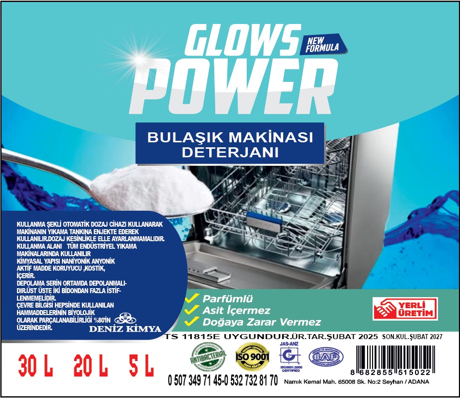 Glows Power Bulaşık Makinesi Deterjanı, profesyonel mutfakların yoğun bulaşık yükü için özel olarak geliştirilmiştir. Güçlü formülü sayesinde yağ, kir ve kurumuş lekeleri kolayca çözer. Cam, porselen ve paslanmaz çelik yüzeylerde etkin temizlik sağlar, lekesiz ve parlak sonuç bırakır. Kireç oluşumunu engelleyerek makinenizin ömrünü uzatır.